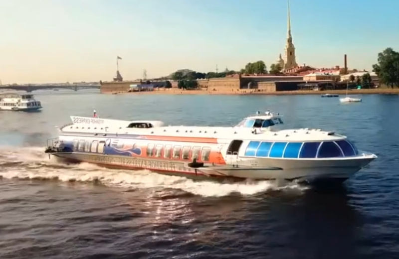 Легендарные теплоходы «Метеор» на подводных крыльях перемещаются по воде с завидной скоростью до 65 км/час