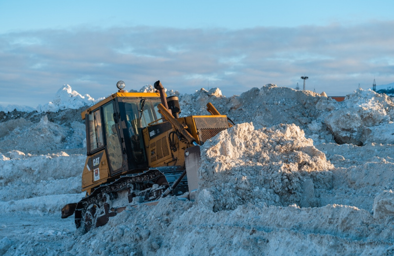 Бульдозер направлен на снежную свалку.