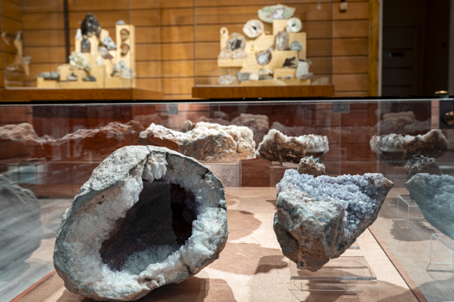 часть экспозиции «Мир камня» показывает удивительные образцы минералов.