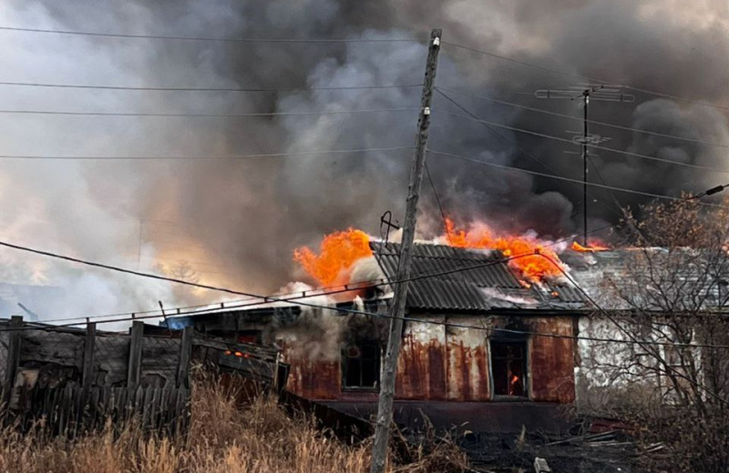 Семь деревянных построек пострадало от огня на ул. Литейной в Магадане