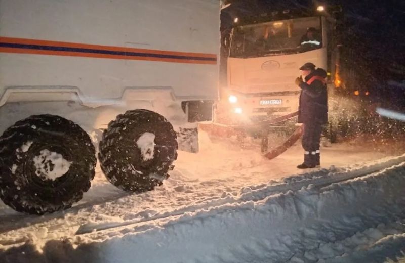 В это время спасателям МЧС поступило сообщение о скоплении большегрузной техники в 50 км от Мадауна. Прибыв на место, специалисты выяснили, что дорожная техника уже работает на участке, расчищает проезд и помогает большегрузам. Дополнительная помощь спасателей не потребовалась.