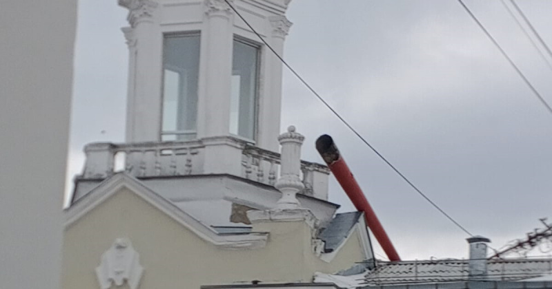 МАГАДАН. КОЛЫМА-ИНФОРМ. В Магадане сейчас сильный ветер. Сегодня упал шпиль со знаменитой башни, одного из символов Магадана, которая находится на доме на пересечении улицы Портовой и проспекта Ленина.