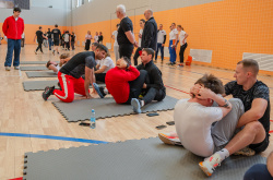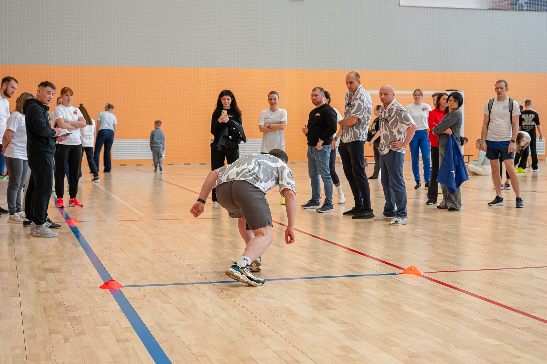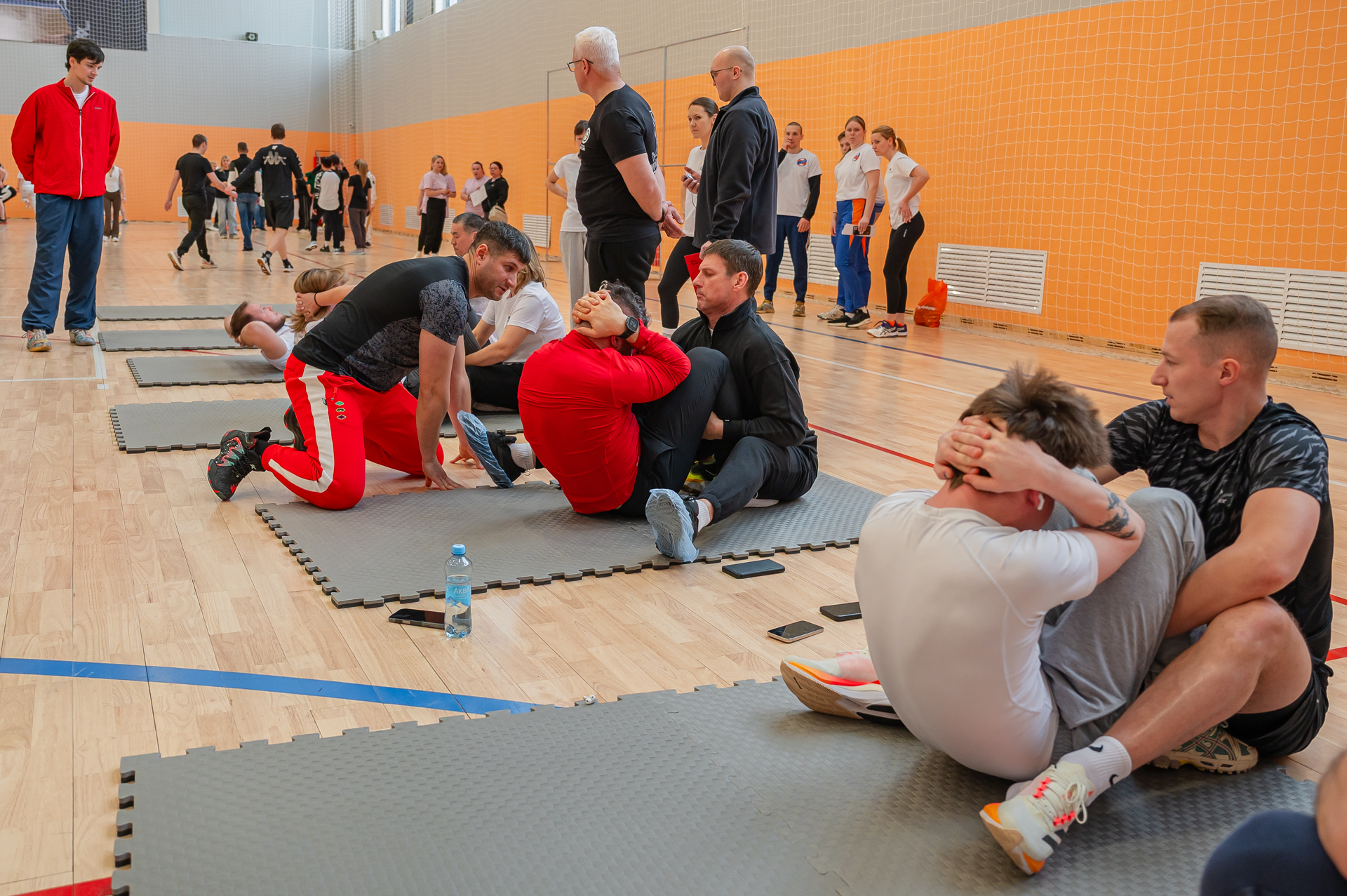 В этот же день команды прошли первый этап соревнований по общей физической подготовке как в личном, так и командном зачетах. Он включил в себя такие испытания: прыжок в длину с места, поднимание туловища из положения лежа за 1 минуту, наклон вперед из положения стоя на гимнастической скамье, челночный бег (встречная эстафета).