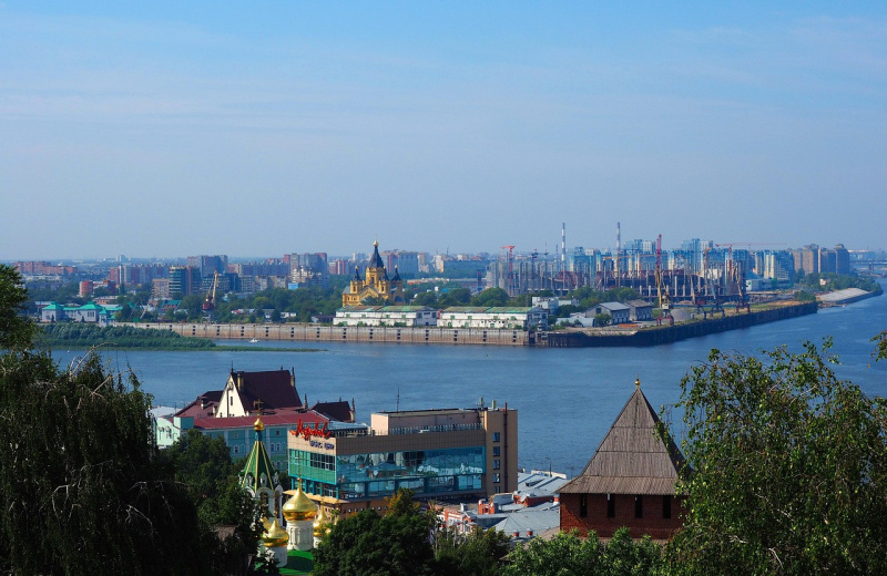 С воды в Нижнем Новгороде открываются панорамные виды на главные исторические и современные достопримечательности, включая: