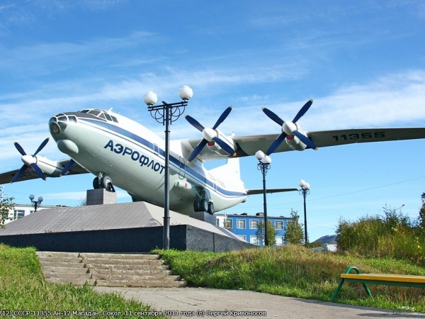 Как устанавливали памятник Трудовой славы в Магадане: самолёт Ан-12 с бортовым номером 11355 (Видео)
