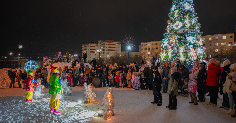 В Магадане на Театральной площади зажглась главная новогодняя елка (Видео)